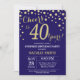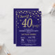 Surprise 40th Birthday Navy Blue and Gold Diamond Invitation