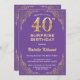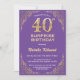 Surprise 40th Birthday Purple and Gold Glitter Invitation