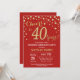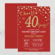 Surprise 40th Birthday Red and Gold Diamond Invitation