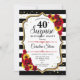 Surprise 40th Birthday Invitation. Feminine design with faux glitter gold. Features sunflowers, red roses, black & white stripes, script font and confetti. Perfect for an elegant birthday party. Can be personalised to show any age. Message me if you need further customisation.