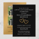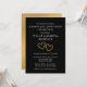 Create an elegant, faux gold and black invitation with this surprise 50th wedding anniversary party invitation template. Add two photos to the back of the invitation for a lovely now and then photo invitation. Easily personalise this stylish black and gold party invitation by adding the couple's names, party date and time, location and other details you choose. All the modern, simple typography is editable. "Surprise 50th Anniversary Celebration" can be customised for any anniversary year. I created the two golden gradient hearts with impressions of buds and leaves for a botanical feel. The unique golden tan gradient hearts are nestled next to each other for a romantic touch. See my golden 50th wedding anniversary collection for matching party table decorations and favours. Create a beautiful memorable party to honour a life long commitment of love.