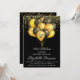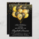 Black and gold balloons And confetti 50th birthday party invite. Bold black and gold style design with modern white script typeface. Customise for any age. 30, 40, 60, 70, 80, and over.
