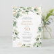 This exquisite, watercolor eucalyptus with gold leaf embellishments and gold splattered dots surprise 50th birthday party invitation with card request is perfect for celebrating your wife, mum, sister, aunt, friend, grandmother. It's soft flowy design is modern yet traditional. Select Personalise this template to make it uniquely your own. In seconds you will see your stunning 50th birthday party invitations.