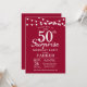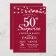 Surprise 50th Birthday Invitation with String Lights. Burgundy Red Background. 13th 15th 16th 18th 20th 21st 30th 40th 50th 60th 70th 80th 90th 100th, Any age. For further customisation, please click the "Customise it" button and use our design tool to modify this template.
