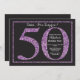 Surprise 50th Birthday Invitation. Black and Purple Glitter Birthday Party Invite with Chalkboard Background. Surprise Birthday. Adult Birthday. Men or Women Bday Bash Party. For further customisation, please click the "Customise it" button and use our design tool to modify this template.