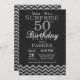 Surprise 50th Birthday Invitation with Silver Glitter Chevron. Chalkboard. Black and Silver Glitter. Adult Birthday. Man or Women Bday Invite. For further customisation, please click the "Customise it" button and use our design tool to modify this template.