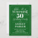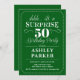 Simple classy design in green and white. Features elegant script font. Surprise bday celebration for man or woman. Can be customized into any age!