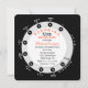 This surprise 50th birthday party invite features a little trip down retro lane with a face of a rotary dial phone in black and white. The word "SURPRISE" is curved along the top of the centre white circle and is written in red with 50th appearing right below in black and continuing with red for the words "Birthday Party". Your party details fit on the white portion of the telephone face with the name of the 50th birthday celebrant appearing in red. A little extra surprise touch is the appearance of the letters SHHH! along the side to emphasise the fact it is a surprise party! Copyright henishouseofpaper