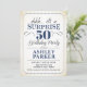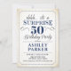 Simple classy design in white, navy blue and black. Features elegant script font. Surprise bday celebration for man or woman. Can be customized into any age!