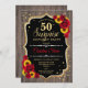 Feminine rustic black, white, red design with faux glitter gold. Features wood pattern, red roses, sunflowers, script font and confetti. Perfect for an elegant birthday party. Can be personalized to show any age. Message me if you need further customization.