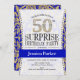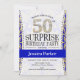 Surprise 50th Birthday - White Gold Royal Blue Invitation