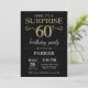 Surprise 60th Birthday Invitation with Black and Gold Glitter Background. Chalkboard. Adult Birthday. Men or Women Bday Invite. Any age. For further customisation, please click the "Customise it" button and use our design tool to modify this template.