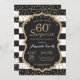 Surprise 60th Birthday Invitation for women or man. Black and Gold Birthday Party Invite. Gold Glitter Confetti. Black and White Stripes. Printable Digital. For further customisation, please click the "Customise it" button and use our design tool to modify this template.
