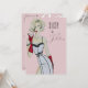 A hand painted watercolor blonde woman pin up model wearing a form-fitting black and white skirt and top with striking long red evening gloves holding a martini on a stylish vintage inspired Sixty and Fabulous - 60th Surprise Birthday Party invitation in dusty rose pink. This invitation is sexy, classy and ready for you to customise!