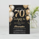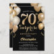 Surprise 70th Birthday Black and Gold Balloons Invitation