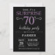 Surprise 70th Birthday Invitation with Black and Purple Glitter Background. Chalkboard. Adult Birthday. Men or Women Bday Invite. Any age. For further customisation, please click the "Customise it" button and use our design tool to modify this template.