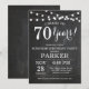 Surprise 70th Birthday Invitation Chalkboard Background with String Lights. Black and White. 13th 15th 16th 18th 20th 21st 30th 40th 50th 60th 70th 80th 90th 100th, Any age. Adult Birthday. Woman or Man Male Birthday Party. For further customisation, please click the "Customise it" button and use our design tool to modify this template.