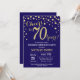 Surprise 70th Birthday Navy Blue and Gold Diamond Invitation