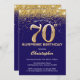 Surprise 70th Birthday Navy Blue and Gold Glitter Invitation