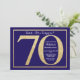 Surprise 70th Birthday Navy Blue and Gold Glitter Invitation