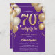 Surprise 70th Birthday Purple and Gold Balloons Invitation