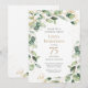 This exquisite, watercolor eucalyptus with gold leaf embellishments and gold splattered dots surprise 75th birthday party invitation is perfect for celebrating your wife, mum, sister, aunt, friend, grandmother. It's soft flowy design is modern yet traditional. Select Personalise this template to make it uniquely your own. In seconds you will see your stunning 75th birthday party invitations.