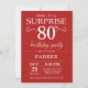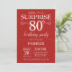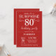 Surprise 80th Birthday Invitation with Red Background. Adult Birthday. Men or Women Bday Invite. 13th 15th 16th 18th 20th 21st 30th 40th 50th 60th 70th 80th 90th 100th, Any age. For further customisation, please click the "Customise it" button and use our design tool to modify this template.