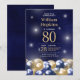 Surprise 80th Birthday Navy Blue Gold Balloons Invitation