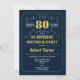 Surprise 80th Birthday - Navy Blue Gold Invitation