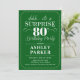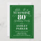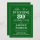 Simple classy design in green and white. Features an elegant script font. Surprise bday celebration for man or woman. Can be customized into any age!