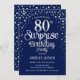Surprise 80th Birthday Party - Silver & Navy Blue Invitation