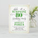 Simple classy design in white, green and black. Features elegant script font. Surprise bday celebration for man or woman. Can be customized into any age!