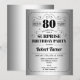 Surprise 80th Birthday Invitation. Retro design in faux silver foil and black. Cheers to 80 years! Can be also personalized into any year.