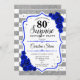 Surprise 80th Birthday - Silver White Royal Blue Invitation