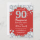 Surprise 90th Birthday Invitation. Red and Silver Rhinestone Diamond Red Background. Elegant Birthday Bash invite. Adult Birthday. Women Birthday. Men Birthday. For further customisation, please click the "Customise it" button and use our design tool to modify this template.