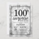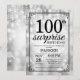 Surprise 100th Birthday Invitation with Silver String Lights with Silver Glitter Background. Silver Birthday. Adult Birthday. Men or Women Bday Invite. 13th 15th 16th 18th 20th 21st 30th 40th 50th 60th 70th 80th 90th 100th, Any age. For further customisation, please click the "Customise it" button and use our design tool to modify this template.