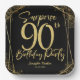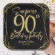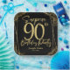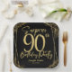 Surprise 90th Birthday Party Black & Gold Glitter Paper Plate