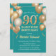 Surprise 90th Birthday Teal and Gold Balloons Invitation