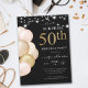 Surprise Balloon Black Gold 50th Birthday Invitation