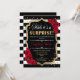 Surprise Birthday - Black White Stripes Red Roses Invitation