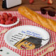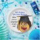 This cartoon graduate is too cute! This plate is sure to get some laughs whether your own graduate was close to not walking in the graduation ceremony or not, either way, a very fun graduation party plate.