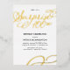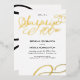This modern and elegant surprise 100th birthday party invitation features the words "surprise 100th" in gold foil script font with a matching swirling design in the bottom right corner. Customise this trendy invite with the name and party info.