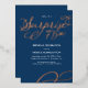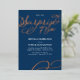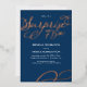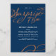 This modern and elegant surprise 75th birthday party invitation features the words "surprise 75th" in rose gold foil script font with a matching swirling design in the bottom right corner over a navy blue background (that can be changed to any colour of your choice). Customise this trendy invite with the name and party info.