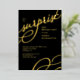 This modern and elegant surprise birthday party invitation features the word "surprise" in gold foil script font with a matching swirling design in the bottom right corner. Customise this trendy invite with the name and party info.