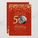 SURPRISE Photo 50th Birthday Gold Confetti Red Invitation