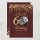 SURPRISE Photo 60 Birthday Gold Confetti Burgundy Invitation