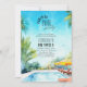 Surprise pool party invitation with inviting watercolor illustration of tropical swimming pool and sun terrace. Perfect for adult birthday party, poolside cocktails, beach party, tropical luau party etc. Easy to edit template so you can adjust for any age, ie., big three o can be changed for 30th birthday, 21st birthday or just birthday if age is a secret! The back of the invite has equally enticing summer blue sky and rippling water.