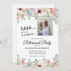 This surprise retirement party invitation showcases a graceful watercolor floral border adorning the top and bottom and offers space for a photo of the retiree. With soft pastel hues of peach and purple, it offers a delicate and feminine charm.