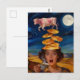 Surprised Breakfast Lady Pancakes Coffee Pink Cow Postcard