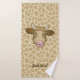 Surprised Cow's head illustration. Seamless cow pattern background. Custom text.